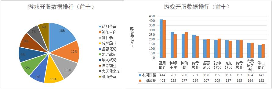 上周,360游戲以開服總數(shù)485組超越37游戲坐上冠軍寶座,但本周明顯對之前的開服策略做了大幅度的調(diào)整,可以看出來的是神印王座在360游戲的開服占比中大幅下降,由上周的11.9%降至本周的7.4%,且由于基數(shù)不同,想必360游戲減少的神印王座服務(wù)器數(shù)量應(yīng)該要更多。而此時37游戲也引進(jìn)了同款游戲,此消彼長之下排名交替也在情理之中。搜狗游戲仍舊排名第三,相比上周減少了23組開服。一周榜單前三開服總數(shù)1291組,占榜單開服總數(shù)的42%,相較上周下降0.5%。