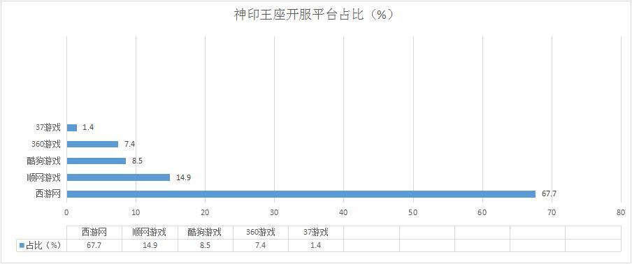 本周《神印王座》開服總數(shù)增漲10.6%,其在西游網(wǎng)開服占比高達(dá)67.7%。新增分布占比平臺37游戲。