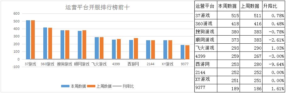 據(jù)開服數(shù)據(jù)統(tǒng)計顯示,本周共有14款新游入駐17家一線平臺。其中《西游伏妖篇》、《神印王座》表現(xiàn)突出,分別入駐4、3家一線平臺。9377獨代產(chǎn)品《寒刀》緊隨其后,本周入駐易樂玩、哥們網(wǎng)。此外《封神霸業(yè)》、《暗黑神話》本周于37游戲開啟首測。