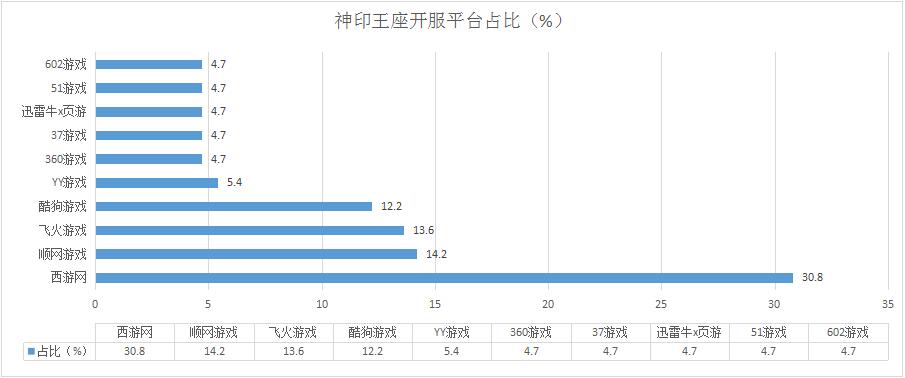 《神印王座》本周開服略有減少,但整體趨勢仍保持不變。其在西游網(wǎng)開服占比減少4.2%。