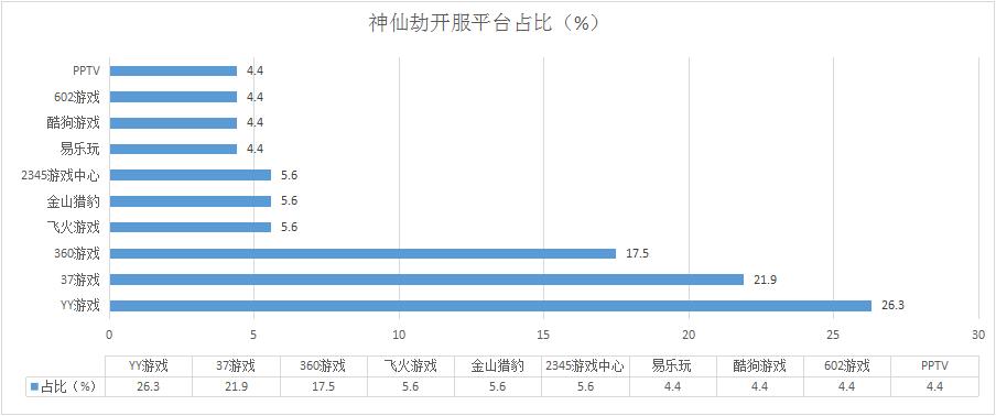 本周《神仙劫》開服總數(shù)較上周減少7.2%,但整體開服形勢保持穩(wěn)定。新增分布占比平臺PPTV,開服頻率1服/天。