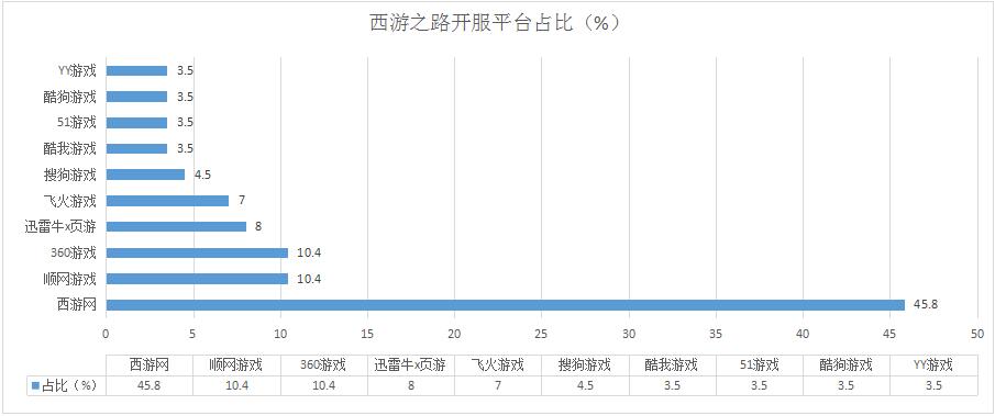 《西游之路》本周開(kāi)服趨勢(shì)繼續(xù)保持漲勢(shì),開(kāi)服總數(shù)較上周增漲18.1%。新增分布占比平臺(tái)搜狗游戲、YY游戲。