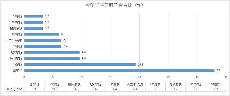 本周《神印王座》開(kāi)服減少7.6%,主要影響來(lái)源于西游網(wǎng)調(diào)整其日均開(kāi)服頻率為10服/天。新增分布占比平臺(tái)602游戲,開(kāi)服頻率1服/天。