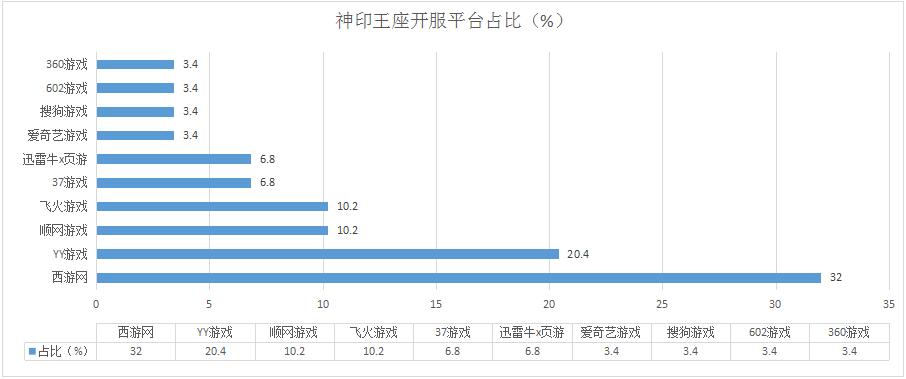 本周《神印王座》開(kāi)服數(shù)減少了6.7%,其在360游戲的開(kāi)服頻率下調(diào)為1服/天。新增分布占比平臺(tái)愛(ài)奇藝游戲。