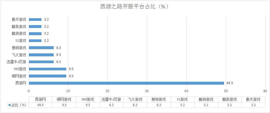 本周《西游之路》開服總數(shù)稍有減少,但整體開服趨勢未發(fā)生改變,其在西游網(wǎng)開服占比接近半數(shù)。新增分布占比平臺酷狗游戲,開服頻率1服/天。