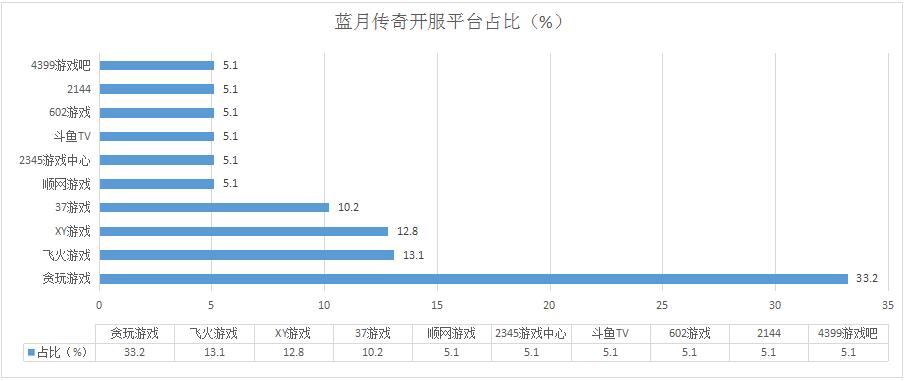 本周《藍(lán)月傳奇》整體開服趨勢仍保持穩(wěn)定,各平臺開服分布情況基本未發(fā)生變化,新增分布占比平臺2345游戲中心、2144。