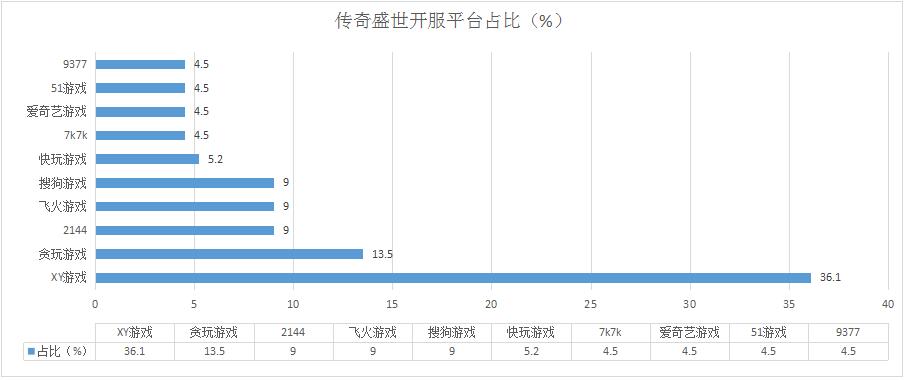 本周《傳奇盛世》開服保持穩(wěn)定,在各平臺開服頻率基本未發(fā)生變化。新增分布占比平臺9377。