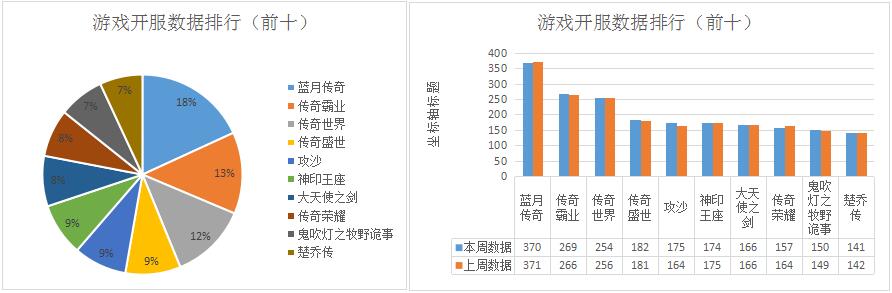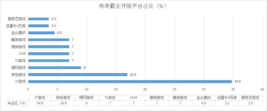 《傳奇霸業(yè)》本周開服總數(shù)較上周略有增漲,其在各個(gè)平臺(tái)的分布占比情況也大多保持穩(wěn)定。