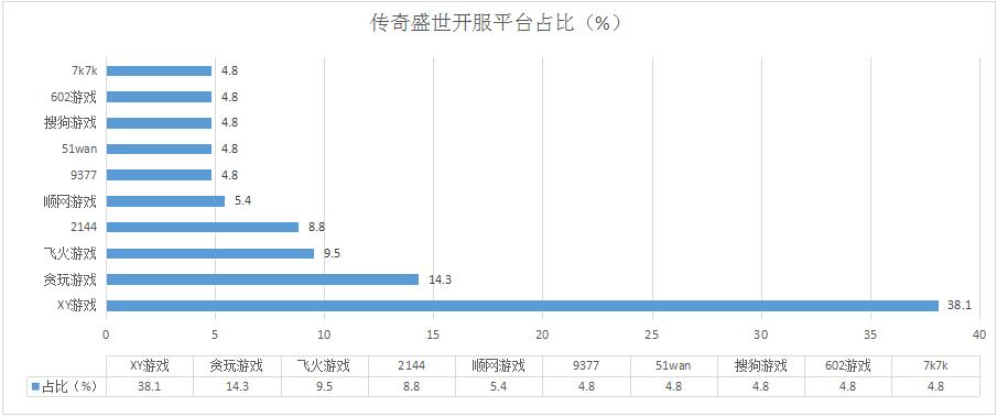 本周《傳奇盛世》開服情況也保持著較為穩(wěn)定的態(tài)勢,其在各個(gè)平臺(tái)的分布占比情況與上周相比基本未發(fā)生變化。