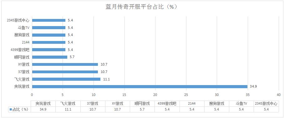 《藍(lán)月傳奇》本周開服數(shù)保持穩(wěn)定,各平臺(tái)分布占比基本未發(fā)生變化,其在多個(gè)平臺(tái)的開服頻率保持在2服/天。
