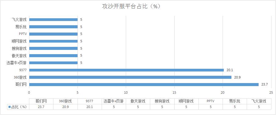 《攻沙》本周開服總數(shù)較上周增漲了6.7%,其在哥們網(wǎng)的開服頻率仍高達(dá)5服/天,同時(shí)在多個(gè)一線平臺(tái)的開服頻率穩(wěn)定在1服/天。