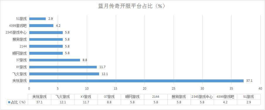 《藍月傳奇》本周開服數(shù)略有減少,但整體開服形勢穩(wěn)定,其在順網游戲等多家平臺的開服占比穩(wěn)定在5.8%。
