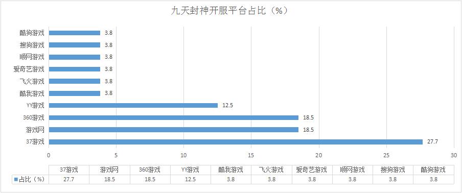 本周運營平臺主打游戲基本上都與上周保持了一致,其中37游戲和360游戲都略微下調了九天封神的開服數(shù),但作為平臺主打的游戲地位并沒有發(fā)阿生變化。