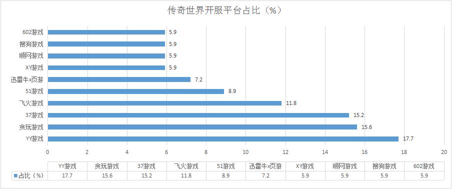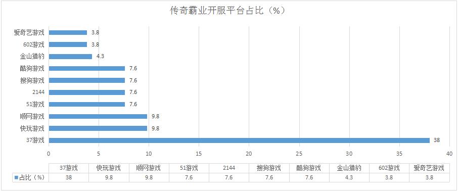 本周《傳奇霸業(yè)》開服總數(shù)較上周同樣有所減少,其在快玩游戲的開服頻率調整為2服/天,新增分布占比平臺愛奇藝游戲。