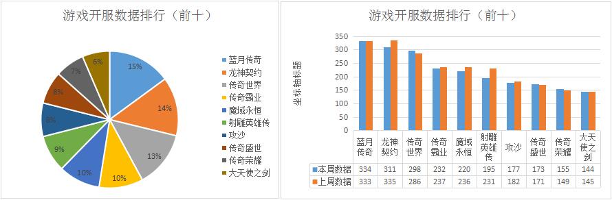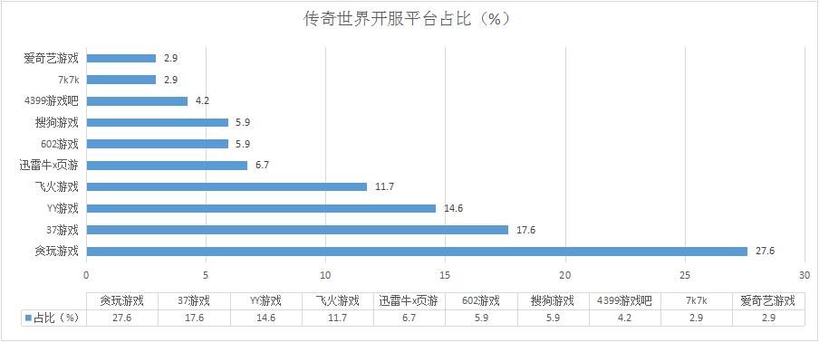 《傳奇世界》本周開服總數(shù)增漲4.2%,其在貪玩游戲開服頻率上調(diào)至10服/天為主要影響因素。新增分布占比平臺602游戲、愛奇藝游戲。