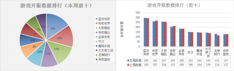《金裝傳奇》本周開(kāi)服總數(shù)與上周持平,新增分布占比平臺(tái)360游戲,開(kāi)服頻率1服/天。