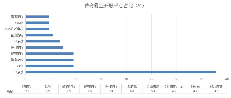 本周《傳奇霸業(yè)》開服總數(shù)較上周略有增漲,其在各平臺分布占比情況基本未發(fā)生變化。