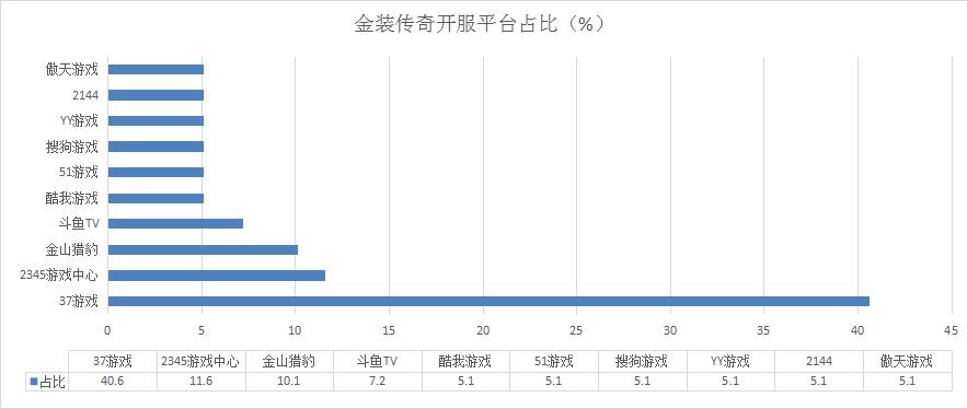 本周《金裝傳奇》開服總數(shù)較上周減少6.5%,2345游戲中心、金山獵豹、斗魚TV下調(diào)其開服頻率為主要影響因素,但其在搜狗游戲等多家一線平臺的開服頻率仍穩(wěn)定在1服/天。