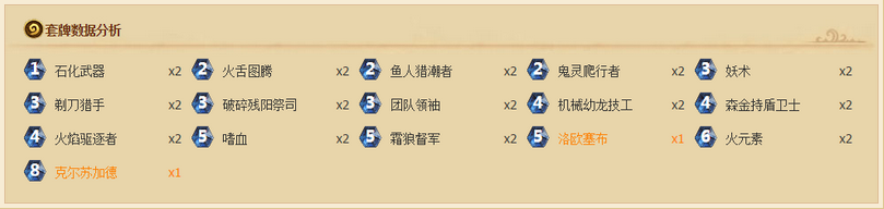 | 戰(zhàn)士——奴隸戰(zhàn)卡組 | 術(shù)士——中速術(shù)卡組 | 盜賊——節(jié)奏賊卡組 |