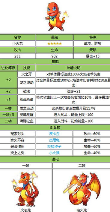 小火龍的加成:120%攻擊,40%生命