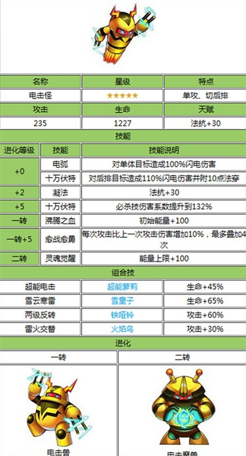 電擊怪加成:110%生命,60%攻擊