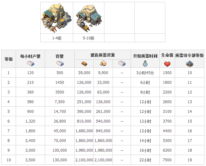 2、鐵礦升級(jí)詳細(xì)數(shù)據(jù):