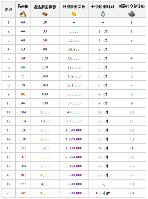 2、地雷升級(jí)詳細(xì)數(shù)據(jù):