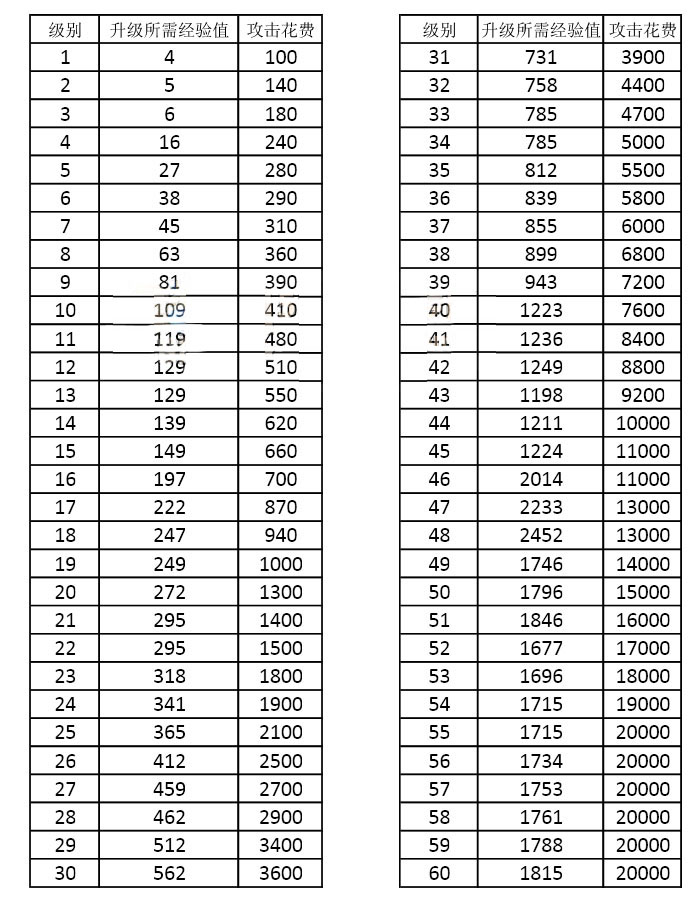 海島奇兵1-60級攻擊花費數(shù)據(jù)